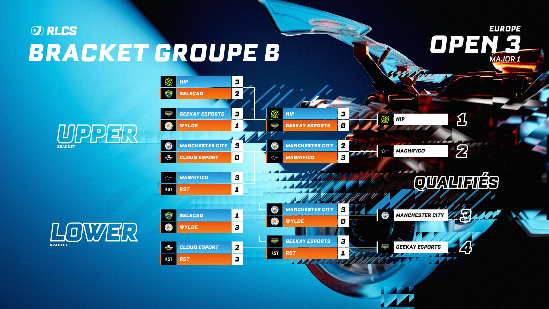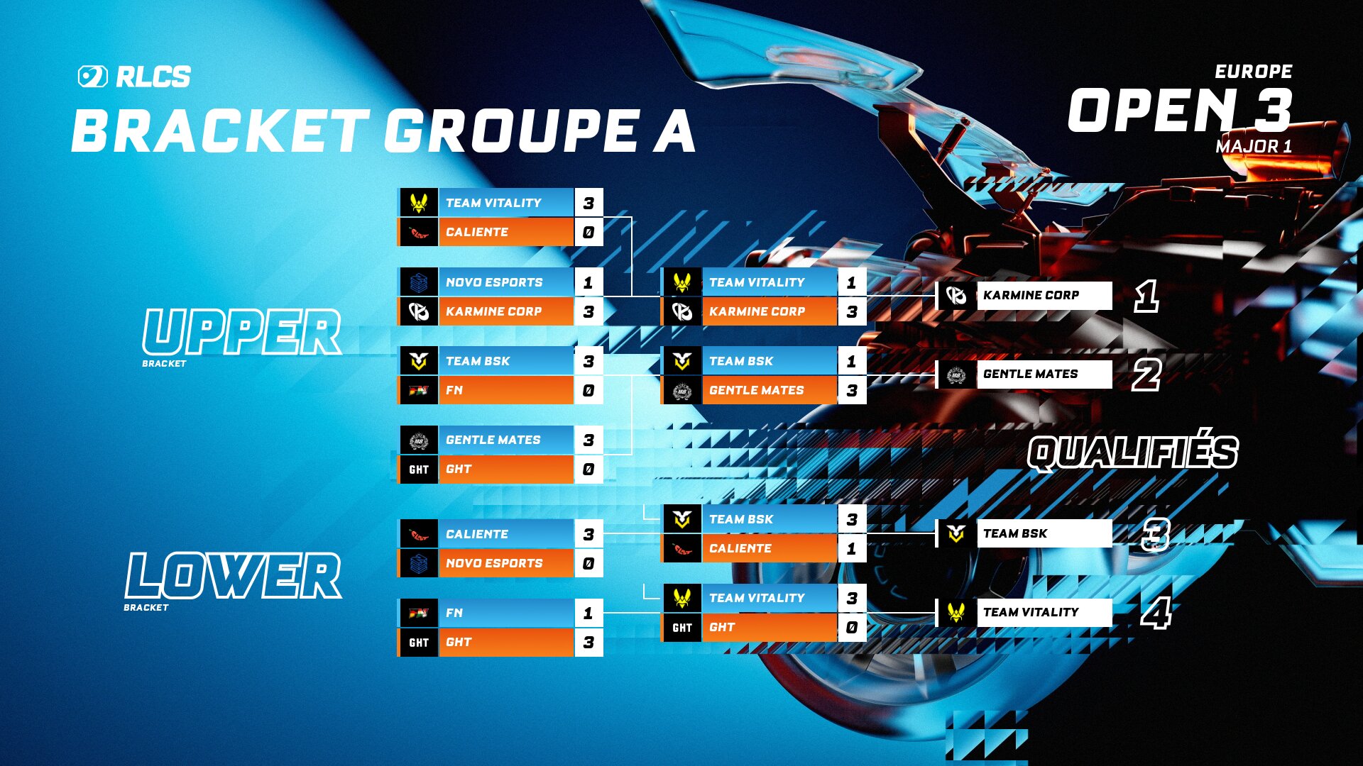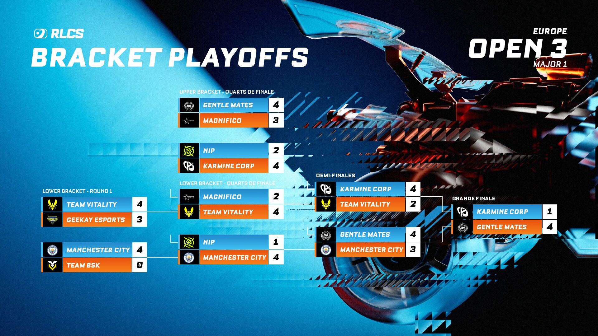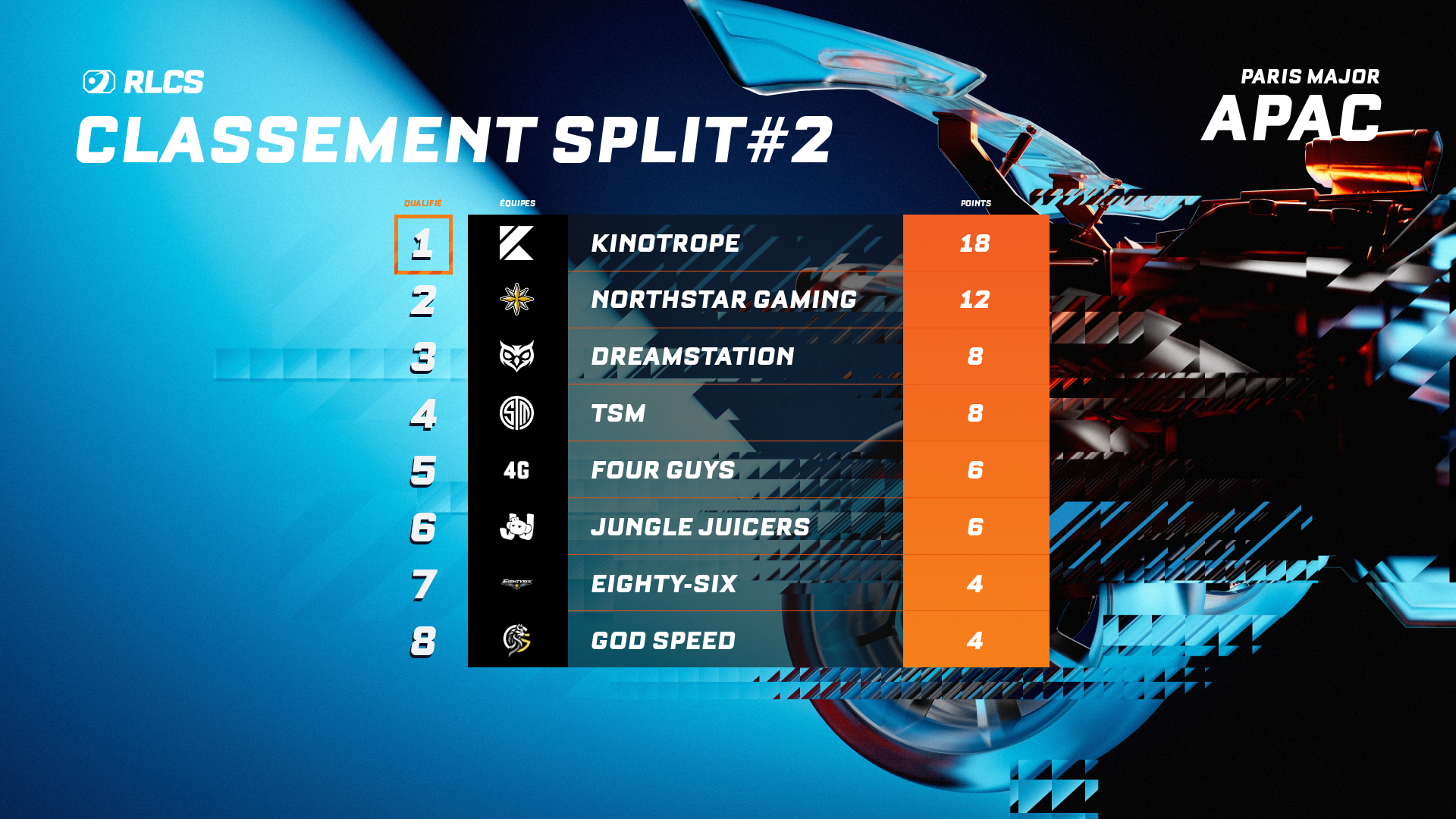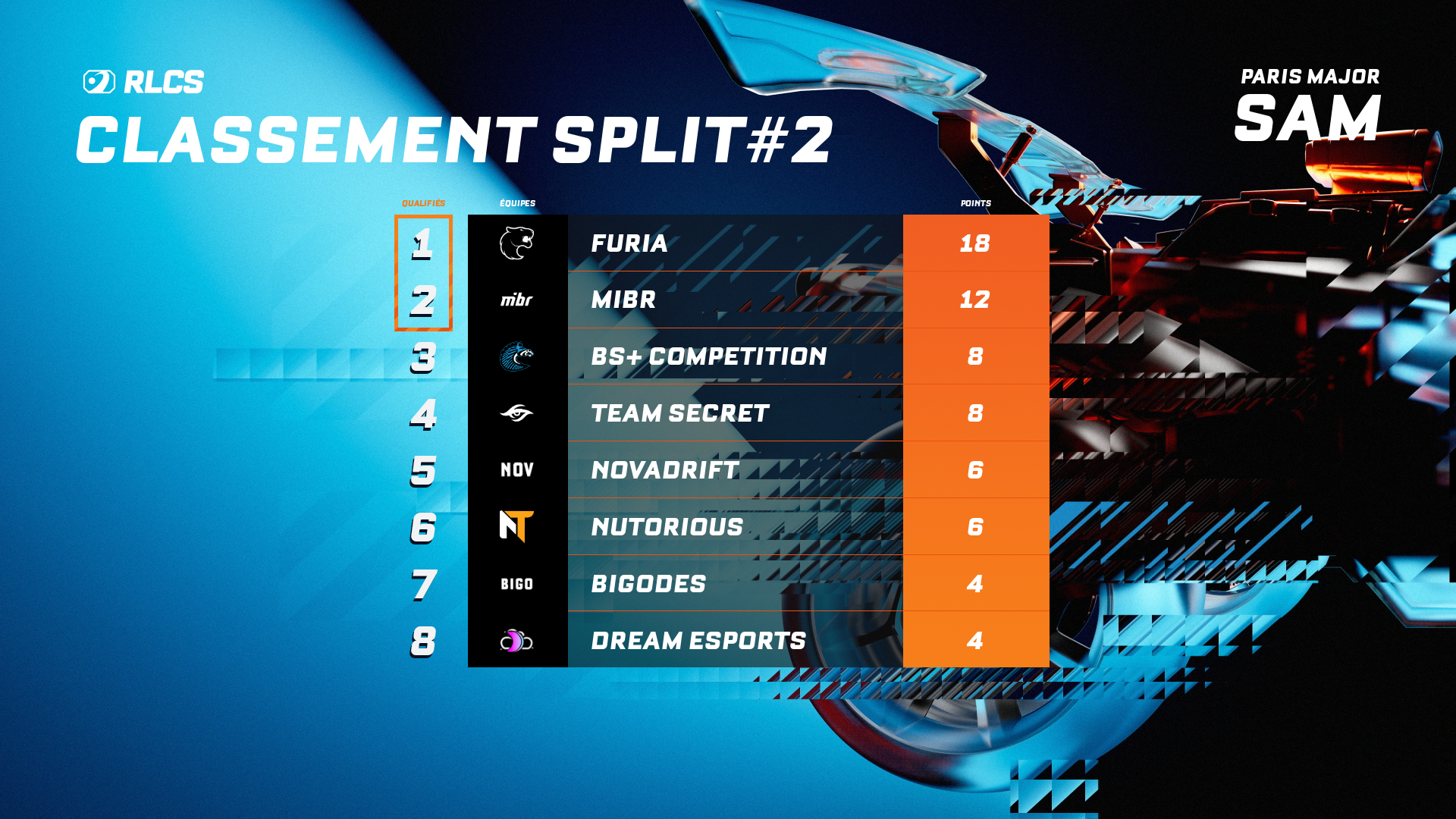 - Les Open Qualifiers rapportent des Points RLCS en fonction des performances. A la fin des trois Opens, les équipes avec le plus de points sont invitées au Major qui conclut le split. Le Major rapporte deux fois plus de points.
